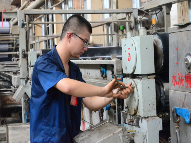 炎炎夏日里,人要時(shí)時(shí)注意防暑降溫,設(shè)備亦然。夏季車(chē)間溫度高,濕度重,對(duì)設(shè)備的維護(hù)保養(yǎng)要比其它季節(jié)更重要。一上班,面一車(chē)間設(shè)備人員李洪凱和師父韓海濤就開(kāi)始了對(duì)車(chē)間印染設(shè)備的維護(hù)保養(yǎng)工作。清潔設(shè)備表面、檢查緊固零部件、檢查更換易磨損零件……內(nèi)容看似簡(jiǎn)單,但只要把這些簡(jiǎn)單的基礎(chǔ)性保養(yǎng)工作做好,就能大大減少設(shè)備的檢修工作量和檢修次數(shù),保障設(shè)備的順利運(yùn)行。
