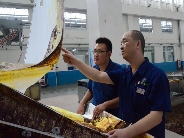 導(dǎo)讀:在公司科技產(chǎn)業(yè)園花布平網(wǎng)印制車間,化料、調(diào)漿、安裝刮刀……孫維生正忙著和同事們進行開機前的準(zhǔn)備工作。