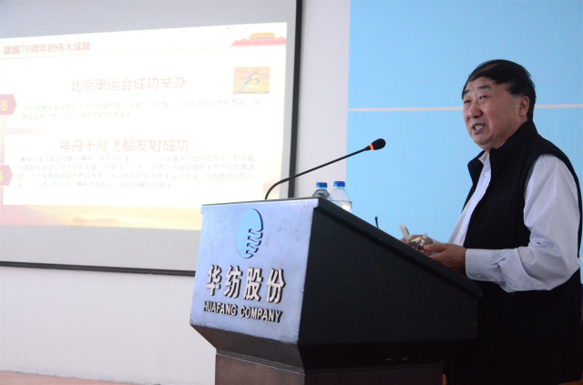 在“不忘初心、牢記使命,爭當(dāng)圓夢人”這部分內(nèi)容中,王力民結(jié)合華紡43年發(fā)展歷程和個人切身經(jīng)歷,介紹了新時代的祖國日新月異的發(fā)展歷程。他說,作為“華紡人”,深刻感悟到公司自1976年建廠以來,在黨的帶領(lǐng)下逐步成長發(fā)展,內(nèi)心充滿了幸福感和自豪感。他告誡公司廣大員工特別是黨員干部,要不忘初心,牢記建設(shè)國家、奉獻(xiàn)社會的歷史使命,在新的形勢、新的機遇下,既要做追夢人,又要做圓夢者。