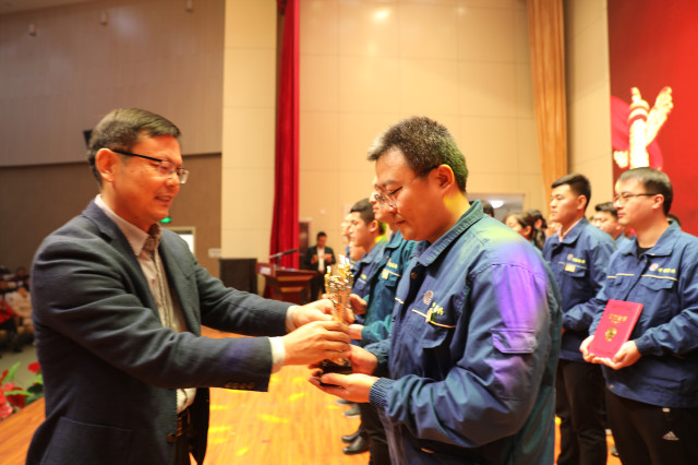1月4日,公司在持續(xù)深化精益生產(chǎn)年度總結(jié)動員大會上,公司對獲得2019年度(第三屆)“華紡工匠”的5位員工進(jìn)行了表彰,副總經(jīng)理盛守祥為他們頒發(fā)獎杯。