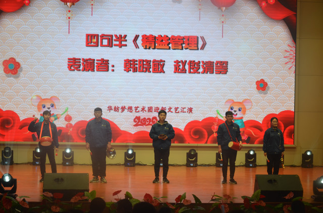 1月4日,繼公司舉行持續(xù)深化精益生產(chǎn)年度總結(jié)動(dòng)員大會(huì)之后,精彩紛呈的“同心筑夢(mèng)·贏戰(zhàn)2020——華紡夢(mèng)想藝術(shù)團(tuán)迎新文藝匯演”與廣大員工見(jiàn)面。整場(chǎng)文藝匯演洋溢著吉祥喜慶的氣氛,充盈著昂揚(yáng)向上的旋律,展現(xiàn)出華紡人樂(lè)觀、奮進(jìn)的精神風(fēng)貌。