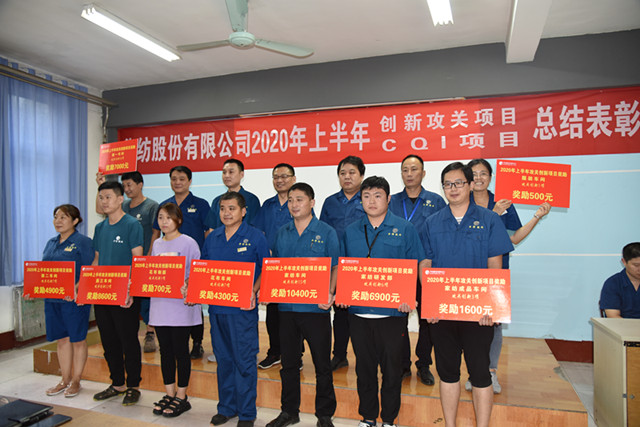 在CQI項目改進方面,公司展開CQI項目共計15項,在7項完成并受獎的項目中,4項超目標完成,實現收益303.8萬元。其中,花布車間完成并受獎的是“減少改漿,提高一次成功率”項目,面三車間完成并受獎的是“降低打底機疵布降等”項目、“提升5.11三防一等品率”項目,動力分公司完成并受獎的是“提高熱油機組經濟發(fā)電量”項目,水處理一車間完成并受獎的是“提高生化處理降低藥劑成本”項目,水處理二車間完成并受獎的是“降低次氯酸鈉噸水處理費用”項目,熱力二車間完成并受獎的是“改善熱水平衡提升換熱效率”項目。
