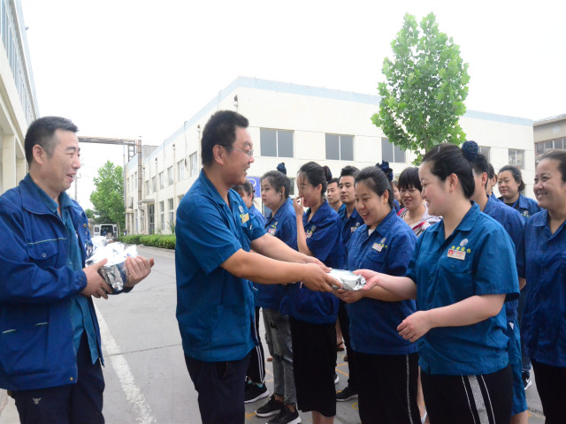 進入5月下旬以來,魯北地區(qū)氣溫逐漸升高,生產企業(yè)的防暑降溫工作提到了議事日程。公司為做好此項工作,采取多措并舉,在最大限度改善生產作業(yè)環(huán)境的同時,為員工發(fā)放夏季工裝等用品,加大向一線生產車間發(fā)送西紅柿湯、綠豆湯等降溫飲品,以確保高溫時節(jié)員工的體能需要和身心健康。